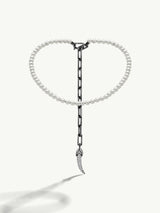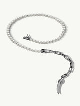 A daring take on the classic pearl necklace, the Damian Horn Talisman Pearl Necklace by Angie Marei is luxuriously handcrafted from black rhodium-plated 18-karat white gold and pavé-set brilliant-cut white diamonds. The powerful sculptural design was inspired by amulets and talismans worn by the ancient Egyptians.