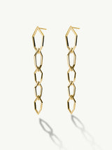 The Amanti Chain Link Earrings feature geometric hexagon pendants - the ancient sacred symbol meaning spiritual consciousness, balance, and male and female energy. Meticulously handcrafted in 18-karat yellow gold, the clean beveled edges of the interlocking graduating link pendants reflect light from every angle.