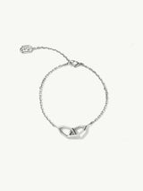 The Amanti Interlocking Hexagon Pendant Bracelet by Angie Marei features a bold geometric hexagon motif—an ancient symbol of harmony and balance—meticulously handcrafted in radiant 18-karat white gold. The finely detailed diamond-cut cable chain is expertly crafted so that each edge reflects light at precise angles, creating a captivating sparkle reminiscent of a diamond’s flash.