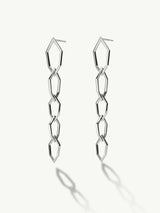 The Amanti Chain Link Earrings feature geometric hexagon pendants - the ancient sacred symbol meaning spiritual consciousness, balance, and male and female energy. Meticulously handcrafted in 18-karat white gold, the clean beveled edges of the interlocking graduating link pendants reflect light from every angle.