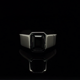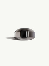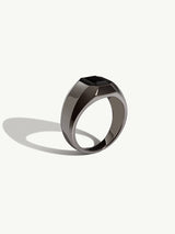 The elegantly designed and crafted Virtus Onyx Signet Ring by Angie Marei in lustrous precious metal features a bold architectural silhouette with a beveled edge design inspired by Ancient Egypt. Made to measure and thoughtfully crafted from hand-casted sterling silver and set with an emerald-cut Black Onyx gemstone.