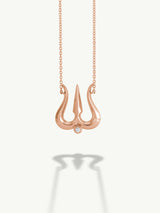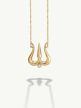 A symbol of divine power and spiritual clarity. Inspired by the sacred Trishula—trident of Lord Shiva—this striking pendant embodies the threefold essence of creation, preservation, and transformation. Carefully crafted in precious gold, the talismanic form is crowned with a brilliant white diamond, illuminating the path to inner truth and higher consciousness.