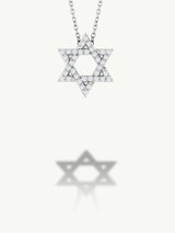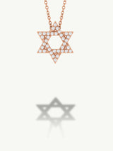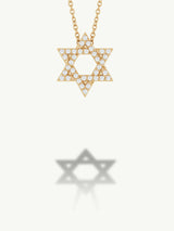 A timeless emblem of faith, identity, and divine protection, the elegant Star of David pendant necklace—crafted in lustrous 14-karat gold and adorned with brilliant pavé-set white diamonds. Each facet of the six-pointed star catches the light, symbolizing harmony between the spiritual and physical realms. Suspended from a delicate chain, this radiant piece is both a sacred talisman and a refined expression of personal style.