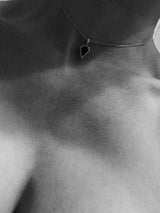 Aphrodite, the goddess of love and beauty, inspired this stunning amulet pendant necklace. The black diamond, a symbol of power and authority, is elegantly set in a solid 18-karat white gold bezel setting. The length of the chain can be adjusted to be worn as a choker. This luxurious and eye-catching necklace is the perfect accessory that adds a touch of mystery and glamour to any look day or night.