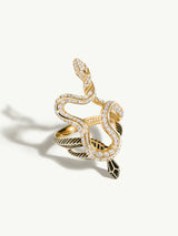 Black Opium Hayya Serpentine Ring I. With Pavé White Diamonds and Black Enamel