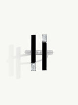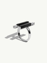 The Invidia Black Onyx Column Ring is a bold yet elegant statement piece, meticulously handcrafted in luminous 18-karat white gold. At its center, a sleek column of polished black onyx is framed by perfectly aligned straight baguette-cut white diamonds, creating a striking architectural silhouette. The linear precision of the diamonds evokes the geometric sophistication of the Art Deco era, while the opulent gold and onyx combination channels the divine grandeur of Ancient Egyptian royalty.