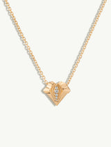 The Alexandria Pendant Necklace by Angie Marei features a gorgeous art deco-inspired pendant with pavé-set brilliant white diamonds on a gleaming round cable chain handcrafted in 18-karat yellow gold. In this piece, Marei takes inspiration from the Step Pyramid of Djoser of Ancient Egypt that ascended upwards from the ground towards the sky, symbolizing a stairway to heaven.