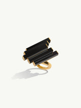 The Invidia Black Onyx Column Ring by New York jewelry designer Angie Marei. Exquisitely hand-crafted in 18-karat yellow gold and polished black onyx gemstones. This beautiful architectural ring combines the opulence and glamour of the Art Deco era with the marvelous jewels of the Ancient Egyptian royals.